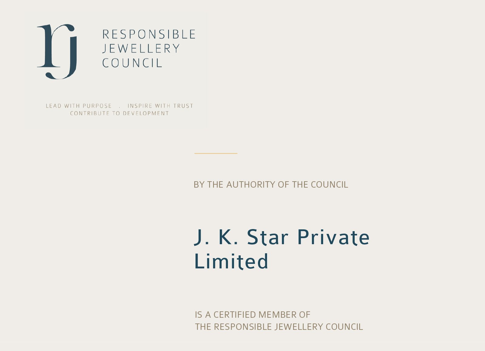 J.K. Star has become a member of RJC and is fully committed to the Code of Practices.We strongly encourage all our business partners to follow and implement the various requirements of the RJC system. More information about the Program is available on the internet site http://www.responsiblejewellery.com.